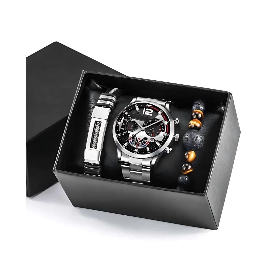 UŠTEDITE 8.00€Izstopajte sa stilom uz ekskluzivni komplet Valtren StyleSet, koji objedinjuje elegantan analogni sat i dvije unikatne narukvice. Ovaj modni set savršena je kombinacija sportskog i klasičnog dizajna koji upotpunjuje svaki vaš outfit, od poslovnog do opuštenog večernjeg stila.